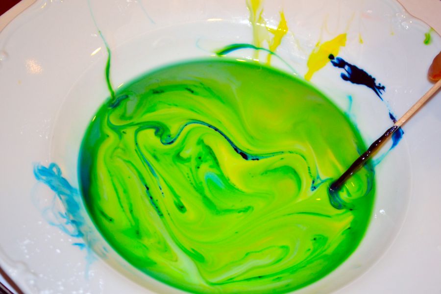 V miske zmiešajte kukuričný škrob s vodou v pomere 2:1, podľa konzistencie ktorá vám vyhovuje primiešajte vodu alebo škrob. Táto záhadná hmota je pri pomalom pohybe (napr. prstom, špajdľou) tekutá a ľahko priechodná. No pri prudkom vnorení, či pohybe sa chová ako pevná látka, je ťažko priechodná, kladie odpor. Dajte dieťaťu do rúk špajdľu, aby si skúsilo konzistenciu. Potom môžete špajdľu postupne namáčať do potravinárskych farieb a nechať dieťa tvoriť obraz. Ak zmes necháte na radiátore alebo voľne uschnúť po čase vám hmota uschne a popraská.