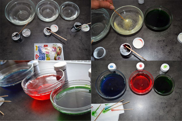 Pripravíme si želatínu do misiek podľa návodu. Želatínu kúpite asi v každých potravinách. Používa sa bežne pri pečení, takže ani pri našich najmenších sa nemusíte báť, keď ju ochutnajú. Prípadne ju môžete aj prisladiť :). Pridáte potravinárske farbivo, ktoré sa používa na zafarbenie marcipánu, koláčikov atď. No a nechajte v chladničke stuhnúť. Po stuhnutí môžete želatínu vyklopiť alebo nechať nech si ju dieťa samé vyleje. Môžete používať formičky a nástroje na plastelínu. Tak skúmajte, trhajte, tvorte... V chladničke výdrží asi 3 dni.