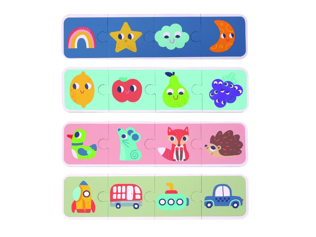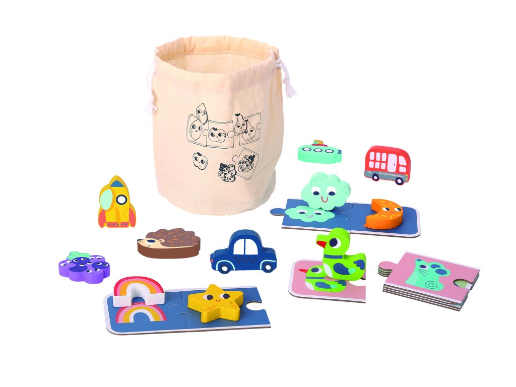 Malé detičky si môžu karty s obrázkami položiť pred seba a spomedzi tvarov vybrať a správne priradiť - tvar položiť na správne miesto na kartičke. Ale inak je drevené pexeso určené pre dvoch až piatich hráčov. Hráči si rozdajú náhodne kartičky, ktoré si položí každý pred seba. V taške sú uložené drevené tvary. Spolu ich je 16.